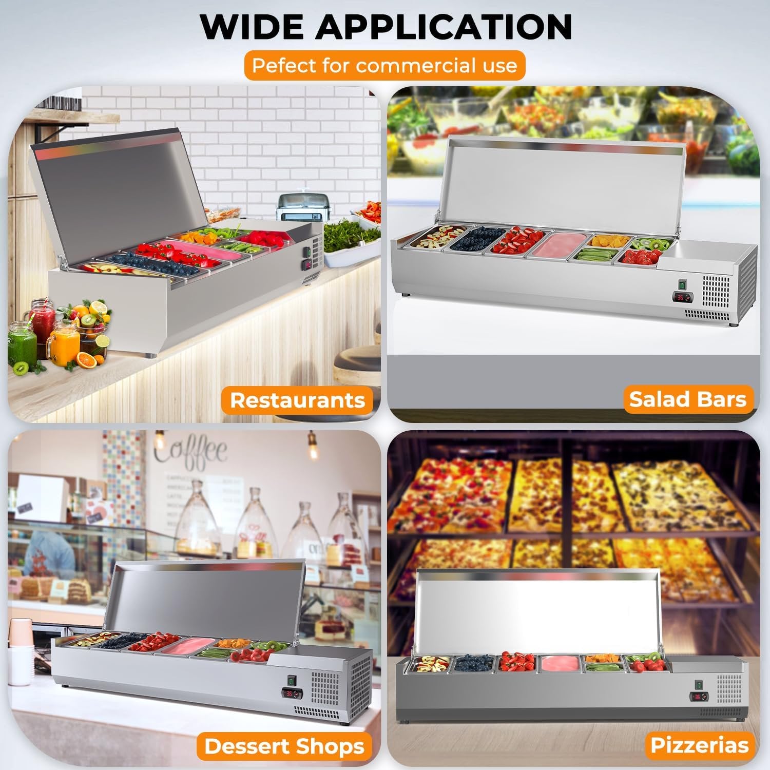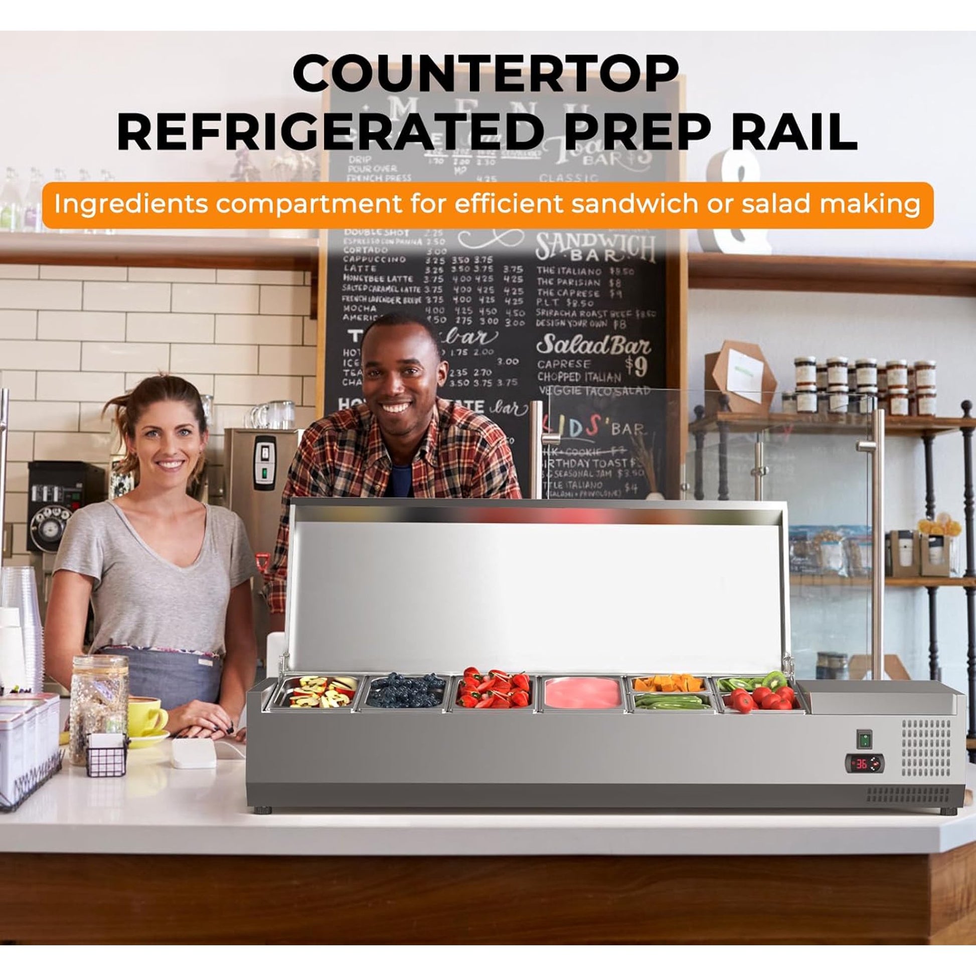 Refrigerated Condiment Prep Station, 55 inch 48 QT Sandwich Prep Table, Salad Bar, 3-Year Warranty